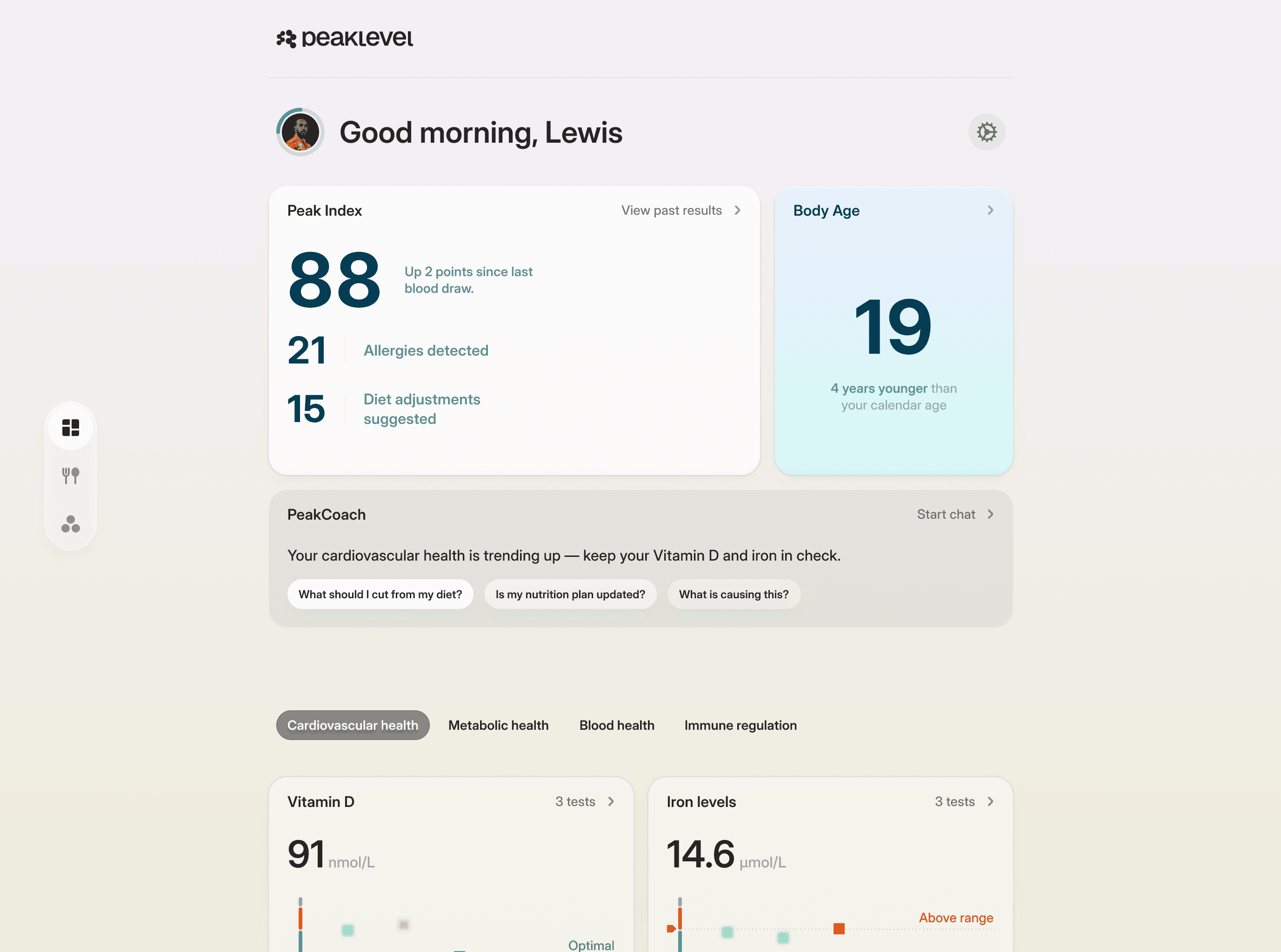 No jargon, no confusion. Peak Coach translates your biomarkers into clear guidance, syncing with your daily activity and sleep.